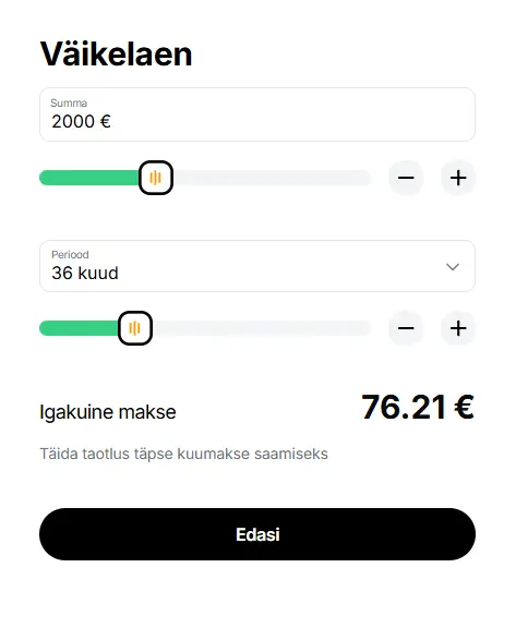 - Vali laenu summa ning periood
